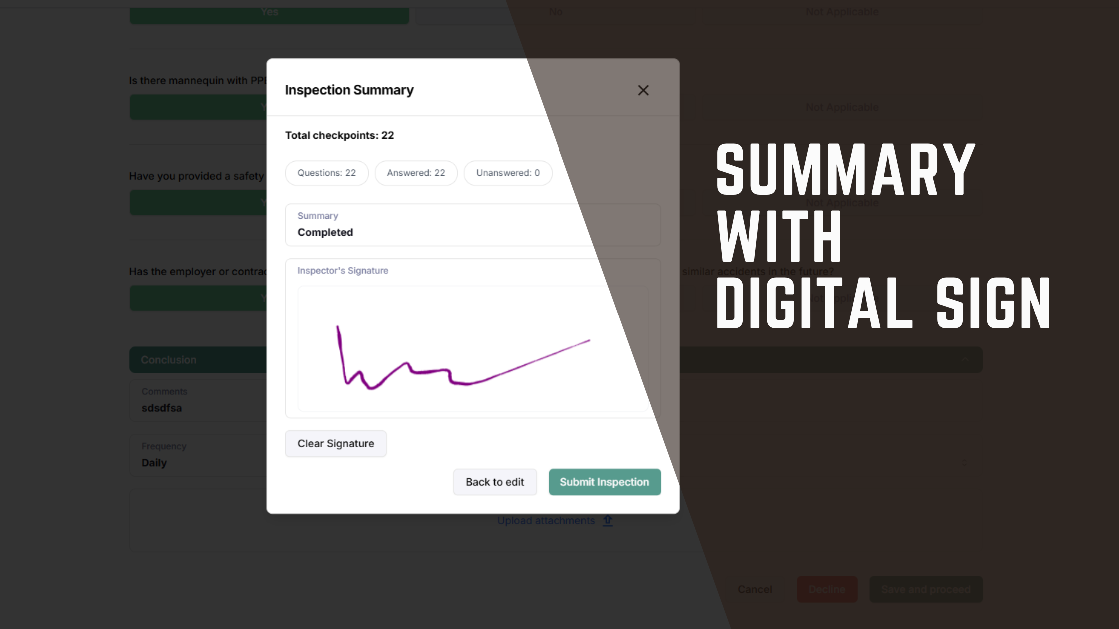 By integrating digital signatures, the OHS App suite enhances security and compliance, minimizing the risk of unauthorized access or data breaches.
